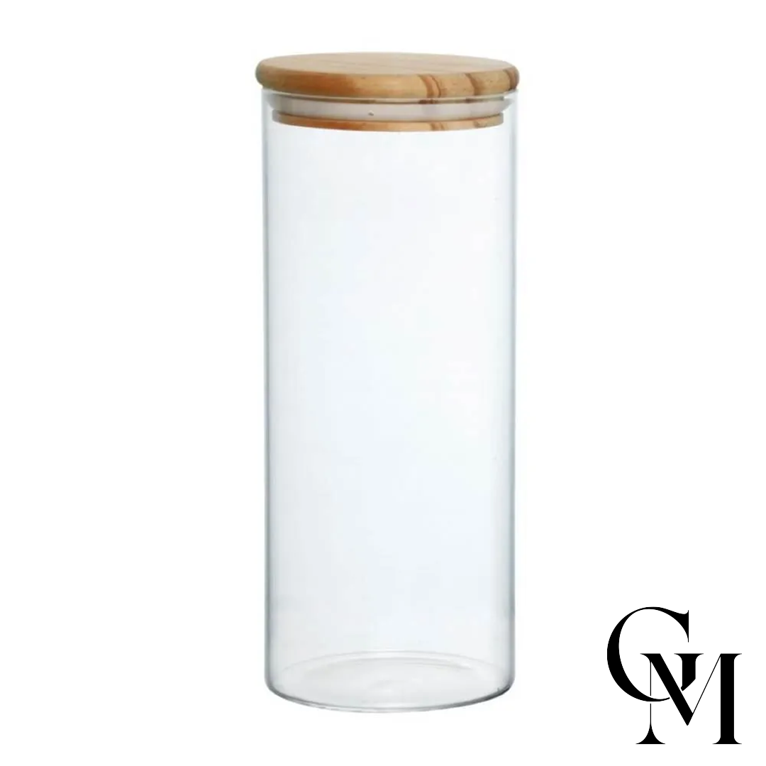 01 Pote De Vidro Hermético Com Tampa De Bambu Hauskraft 1,2L.